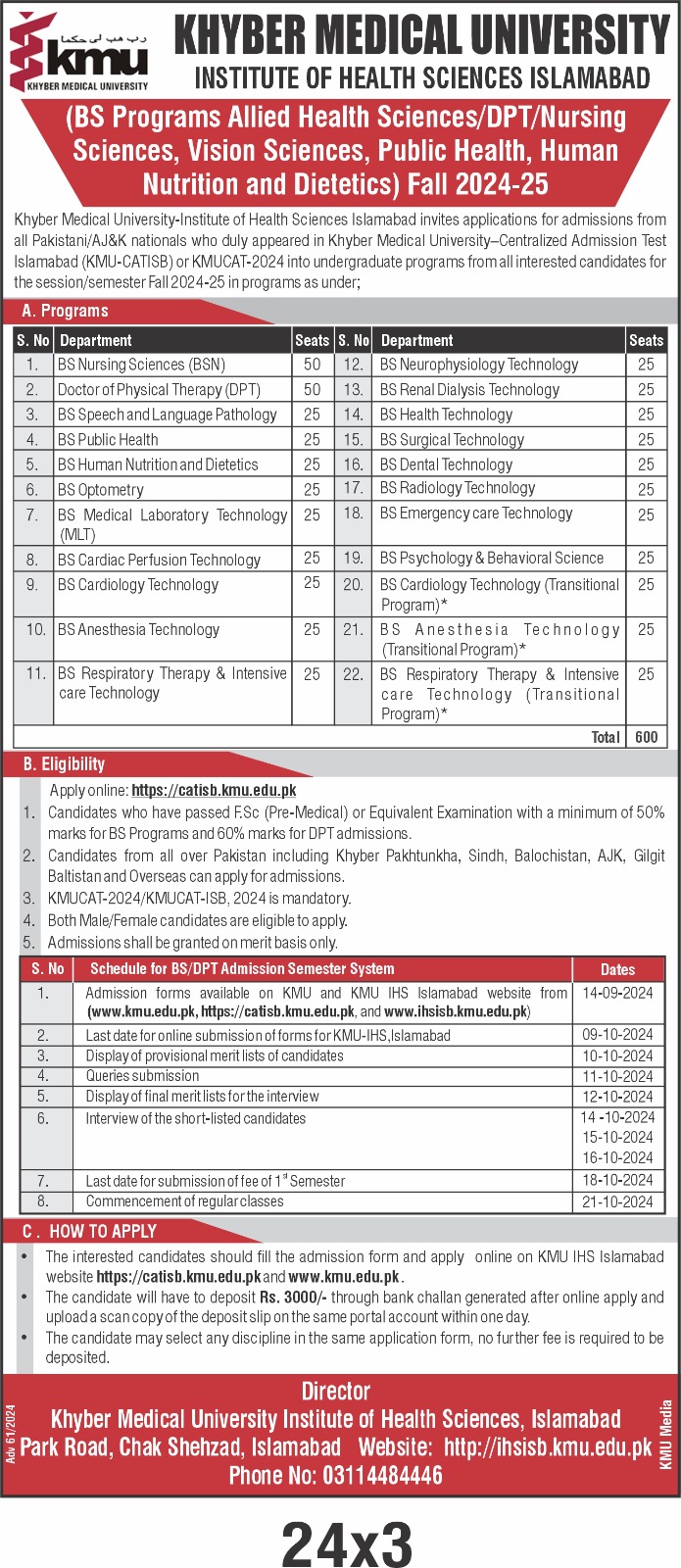 Undergraduate KMU IHS Islamabad Admission Portal